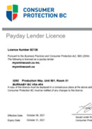Only dealing with a direct lender provides you the optimum level of consumer protection for your advance payday loan. Unfortunately, a lot of those offering you short-term loans online are not direct lenders, so you have to be careful. With PayDay you can rest assured, we are licensed to operate under both federal and provincial government regulations ensuring your financial safety.